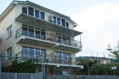 В коттедже четыре этажа. Четвертый этаж занимается трехкомнатный апартамент с кухней. На втором и третьем этажах четыре номера с кухнями и балконами. На первом этаже один номер без кухни и кондиционера. Из номеров второго, третьего и четвертого этажей открывается прекрасный вид на море.