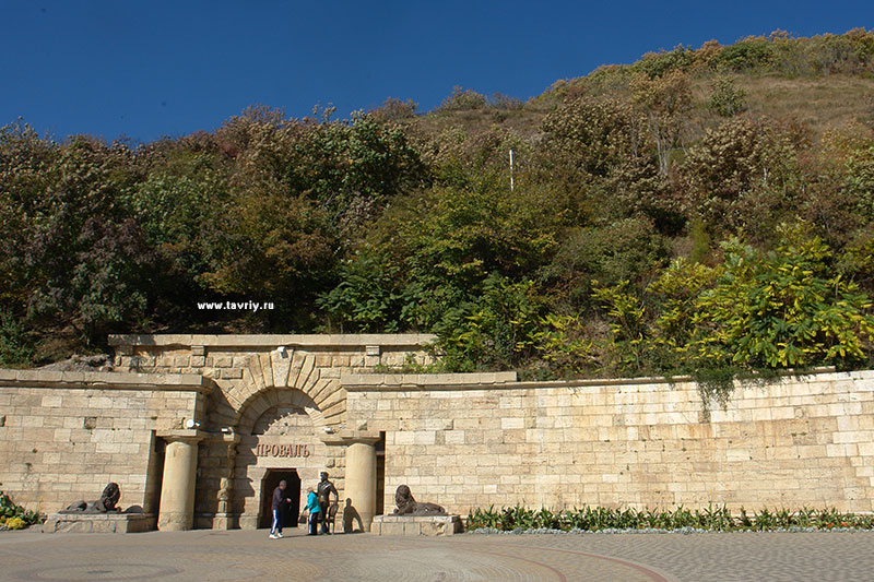 Фото "Ставропольский край. Пятигорск. Вход в Провал" снято в октябре. На фотографии Ставропольский край. Пятигорск. Вход в Провал. Землетрясения на Кавказе стали регистрироваться с конца XVIII века, после «трясения почвы», когда у горы Беш-Тау на горе Машук в Пятигорье образовался знаменитый Провал. Между гор в то время стоял военный лагерь русских гусар во главе с секунд-майором Фронгольмом с дружественными черкесами, которые в августе прошлого года тут разгромил отряд из 6000 враждебной партии черкесов. По этому очевидцев землетрясения 1771 года было много, однако кабардинцы первыми заинтересовались странным явлением, обнаружившимся после подземного удара и тряски земли. На склоне Машука в одном и том же месте постоянно висело белое облачко. Любопытство повело черкес по крутому склону Машука к этому загадочному месту, где они обнаружили образовавшуюся дырку в земле, откуда выходил неприятнейший запах тухлых яиц вместе с густым паром. Они бросили камень сквозь мглу вниз и услышали, как камень упал в воду. Русские солдаты, узнав об этом, опустились в таинственную бездну, зачерпнули воды из озера, которое обнаружили на дне провала. Вода была горячая и очень похожа на ту, что многочисленными родниками истекает по склону Машука и у его подошвы. Первое исследование и письменное упоминание Провала было проведено академиком Иоганн-Антоном Гильденштедтом (1745—1781). В 1773 году, изучая Кавказ, он добрался до района Пятигорья и на южном склоне горы Машук исследовал Провал, он описал что «в ее глубине есть вода... это, вероятно, теплая серная вода, судя по запаху серной печени» бросив вниз камень, он также отметил что до всплеска камень летит девять секунд. Его тогдашний руководитель, исследователь Пётр Симон Паллас (1741 – 1811) спустя двадцать лет, осенью 1793 года так же исследовал Провал применив верёвку. Он отметил, что на склоне горы Машук имеется: «круглая провалина сужающеюся к низу, имеющая в диаметре 6 сажень, а в глубину до воды 12 сажень». Более детальное изучение Провала сделал летом 1823 профессор Александр Петрович Нелюбин (1785 – 1858), который повторно определил глубину и размер воронки, а также произвел химический анализ сероводородной воды, также он предположил, что он был некогда рудокопной ямой. В июле 1837 на средства князя Владимира Сергеевича Голицына (1794 – 1861) зодчие Бернардацци соорудили над Провалом прочный помост, на нем без страха танцевали в шесть пар кадриль, а любопытные могли спуститься на верёвочном блоке до самой воды озера в Провале осветив его факелом, с этого времени Провал именовался Голицынским провалом. Помост простоял так до 1841 года. Пятигорский комендант, полковник Василий Иванович Ильяшенков (1772 – 1842) потребовал его демонтировать по причине испрения древесины, после чего он был разобран. На следующий год профессор химии Харьковского университета Павел Петрович Эйнбродт (1808–1850) изучая воды предложил к озеру пробить туннель. Его поддержал и затем развил эту идею натуралист Фёдор Александрович Баталин (1823 – 1895), приехавший с химиком, тогда в одной комиссии. Он сделал предварительные расчеты, по которым работа по созданию Провальского туннеля должна была занять около месяца при весьма небольших затратах. Известный московский миллионер и благотворитель Петр Алексеевич Лазарик (1810 – 1867), часто бывавший на КМВ и любивший 